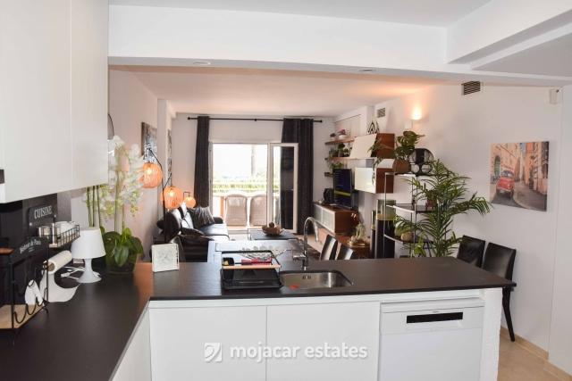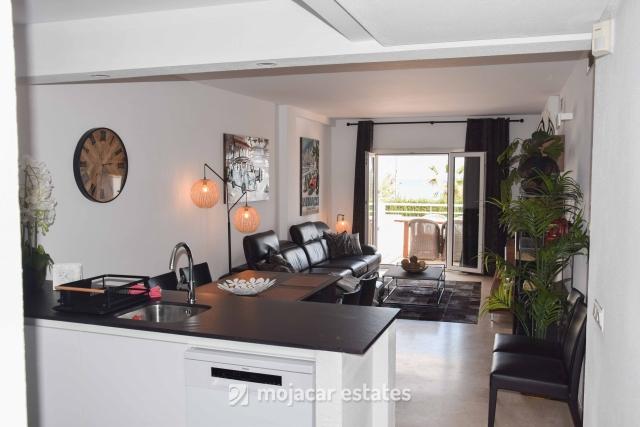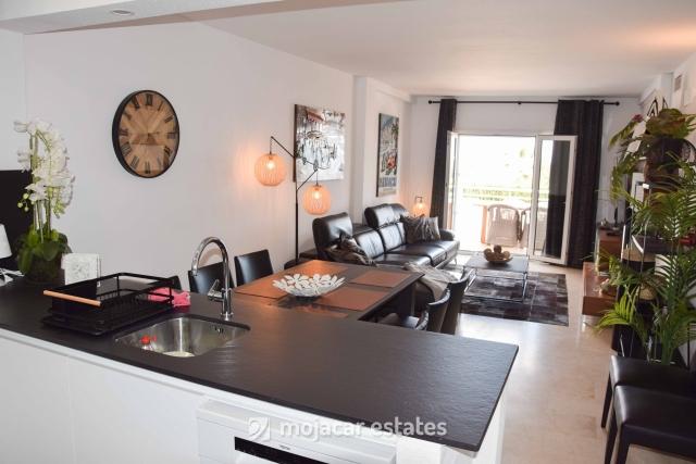 This beautiful apartment is located in one of the most sought after residential area in Mojácar, conveniently situated by the Commercial Centre, opposite all the most fashionable beach bars and restaurants and within easy walking distance to all shops and amenities and very close to big supermarkets.