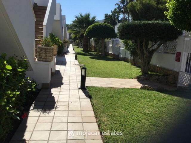 This is a frontline urbanisation called Indabella I, a small, very well kept residential complex with entrance gates from the service road parallel to Paseo del Mediterraneo and the back road Calle Embrujo.