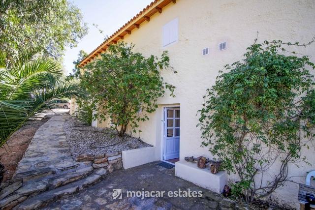 Set in the picturesque valley of Cortijo Grande, this charming cortijo-style villa offers timeless beauty, spectacular views of the Sierra Cabrera mountains, and a tranquil lifestyle just minutes from local dining options. This this 5-bedroom, 4-bathroom property blends historic character with modern comfort. Approaching through a private gate with ample shaded parking, the villa’s traditional Spanish architecture and lush terraced gardens create a serene retreat.