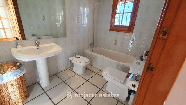 Solid, well-built villa for sale in the “Las Alparatas” area of Mojacar in Almeria, Andalusia with a large olive grove, garage and beautiful mountain views.