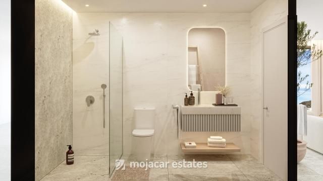Situated on the edge of the breathtaking Cabo de Gata Natural Park, Macenas Mediterranean Resort is a new residential concept that combines nature, exclusivity, and sustainability. This private complex offers direct access to the beach, a golf course, and a full range of services, ensuring all your needs are met within the community. This ground floor apartment offers 79m2 of built area with 2 bedrooms and 2 bathrooms (one ensuite), open plan living-dining room and kitchen. There is a back patio of 10m2 and a front porch of 9m2 plus a utility room.