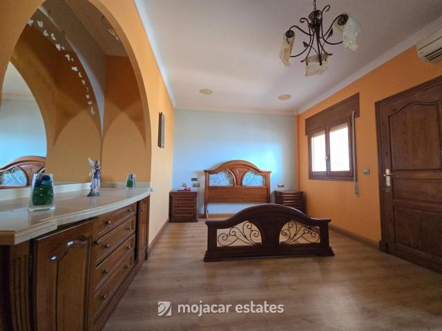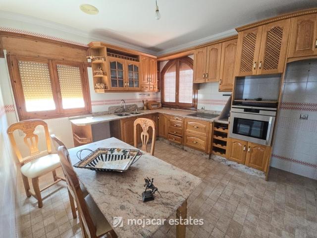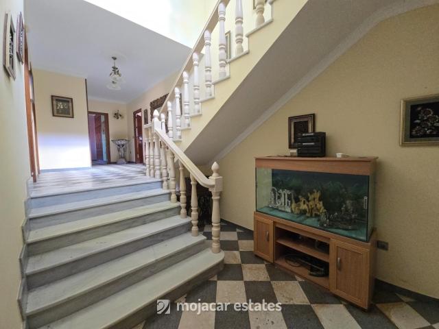 This 817m2 property in Turre offers a mix of residential and commercial spaces with redevelopment potential. Spanning four floors, the building includes a separate 197m2 apartment with its own entrance. The apartment features four bedrooms, two bathrooms, a fully equipped kitchen, and multiple terraces with views over the town. The master bedroom includes an en-suite bathroom and a private terrace, while the living area has a fireplace and access to a covered terrace.