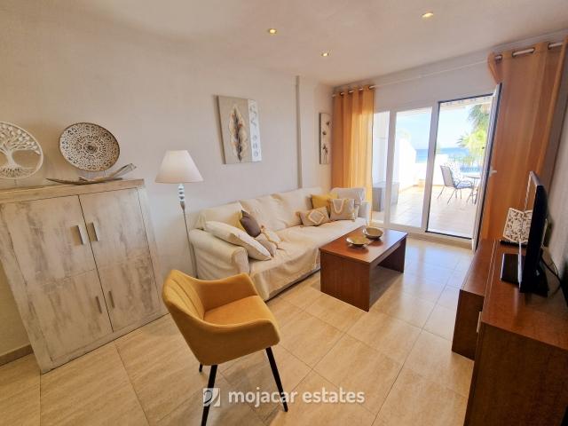 This attractive first-floor frontline apartment is perfectly positioned in the heart of Mojácar Playa, directly opposite the newly finished promenade and just 50 metres from the sandy beach of Playa del Lance. With open sea and coastal views, a very large south-east facing terrace, and all amenities within easy walking distance, this property offers an excellent setting for a relaxed seaside holiday. A car is not essential.