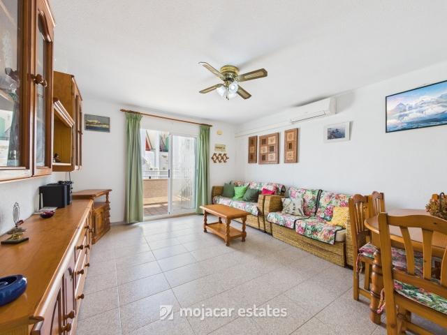 This well-presented townhouse is located on the popular Girasoles urbanisation at the Río Abajo end of Mojácar Playa, within easy walking distance of the Playa de Rumina by the lagoon at Río Abajo and just a short drive to Garrucha with its shops, restaurants, and marina.