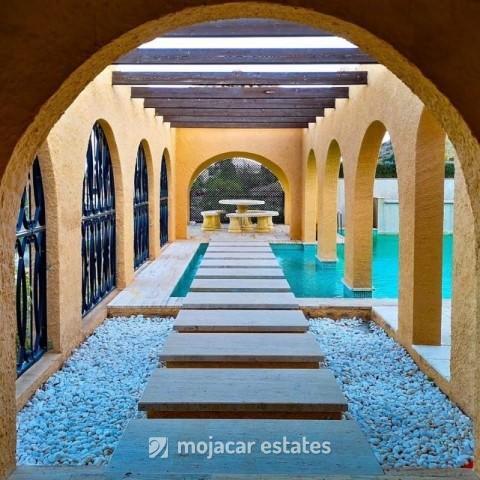 Large 4/5-bedroomed Cortijo style Villa with a total built area of 278.69 mts2 and a 10x7 meters southeastern facing private pool with a water surface area of 63.82 mts2 all set on a beautifully landscaped freehold plot in Las Marinas, Mojácar Playa with sea and mountain views, close to the beach, bars and restaurants, etc. and Mojácar Village, all of which are both less than 5 minutes’ drive.