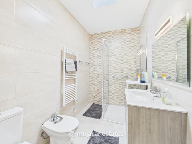 This well-presented 3 bedroom / 1 bathroom + guest WC townhouse is located in a quiet residential area of Mojácar, just 550 metres from the sea and an easy ten-minute walk to the beach. The property has been fully reformed and offers comfortable year-round living with air conditioning (hot and cold) throughout, including the hallway, and new PVC windows.