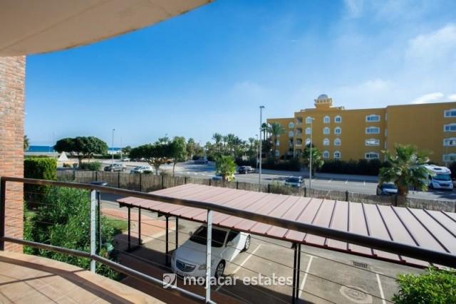 The apartment has approx. 85 mts2 and is comprised of living / dining room with direct access to the large terrace with sea view, fully fitted and well-equipped kitchen, main bedroom with an ensuite bathroom, another doble bedroom and a family bathroom. The property benefits from split air conditioning and ceiling fun in the longe and dining area, the bedrooms have built in wardrobes, the terrace is also fitted with a ceiling fan and so on. The private covered parking is conveniently located opposite the entrance of the block and the 15 mts2 secure private storeroom is also nearby. This is without doubt a rare opportunity right be the sea, priced sensibly and the vendor is looking for a quick sale.