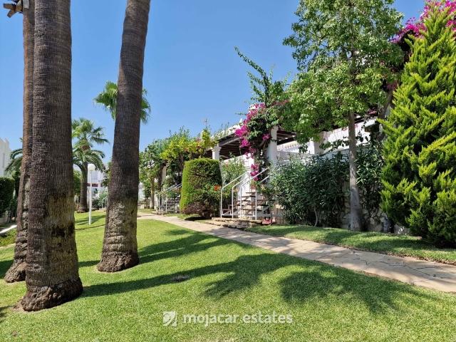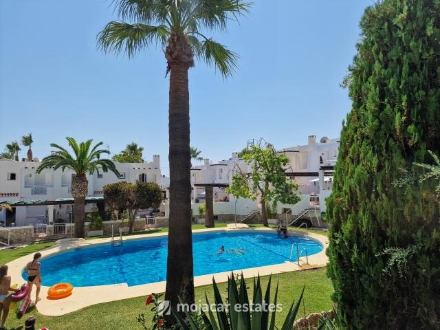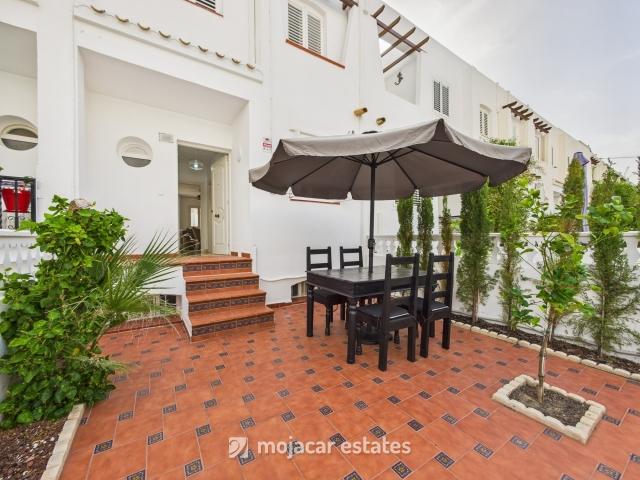 Spacious 3-bed, 3-bath townhouse for sale in Mojácar Playa, just 200m from the beach. Front garden, rear terrace, communal pool and large garage. Great rental potential.