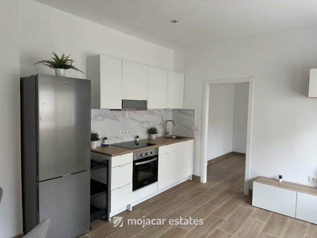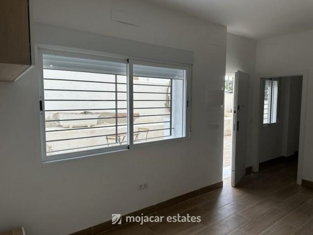 2 bed - 1 bath completely refurbished ground floor apartament in a frontline complex in the beach of Cueva del Lobo, Mojácar Playa, virtually accroos the road from the promenade, the sea, and all the amenities and services. It is also on the bus route.